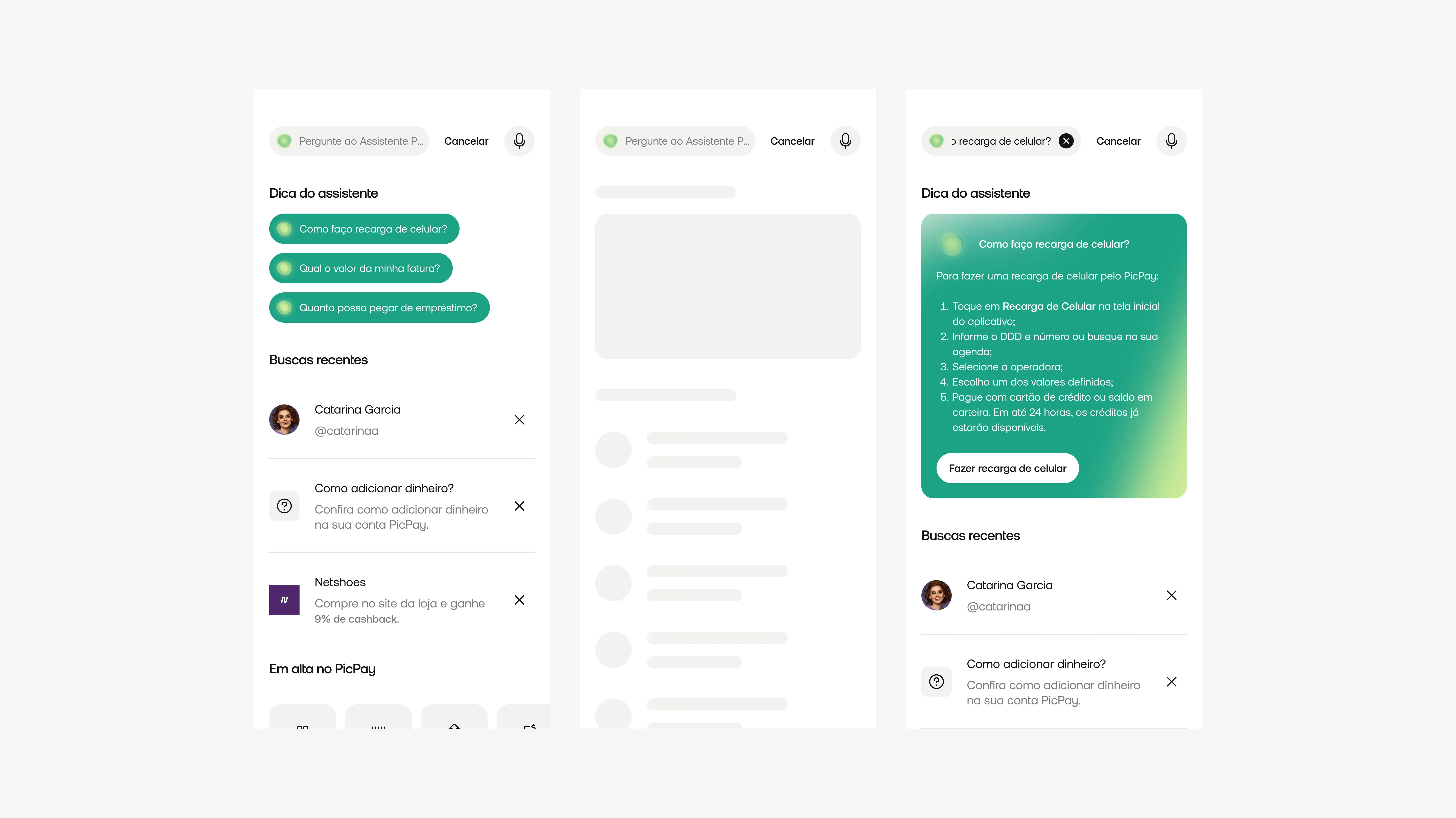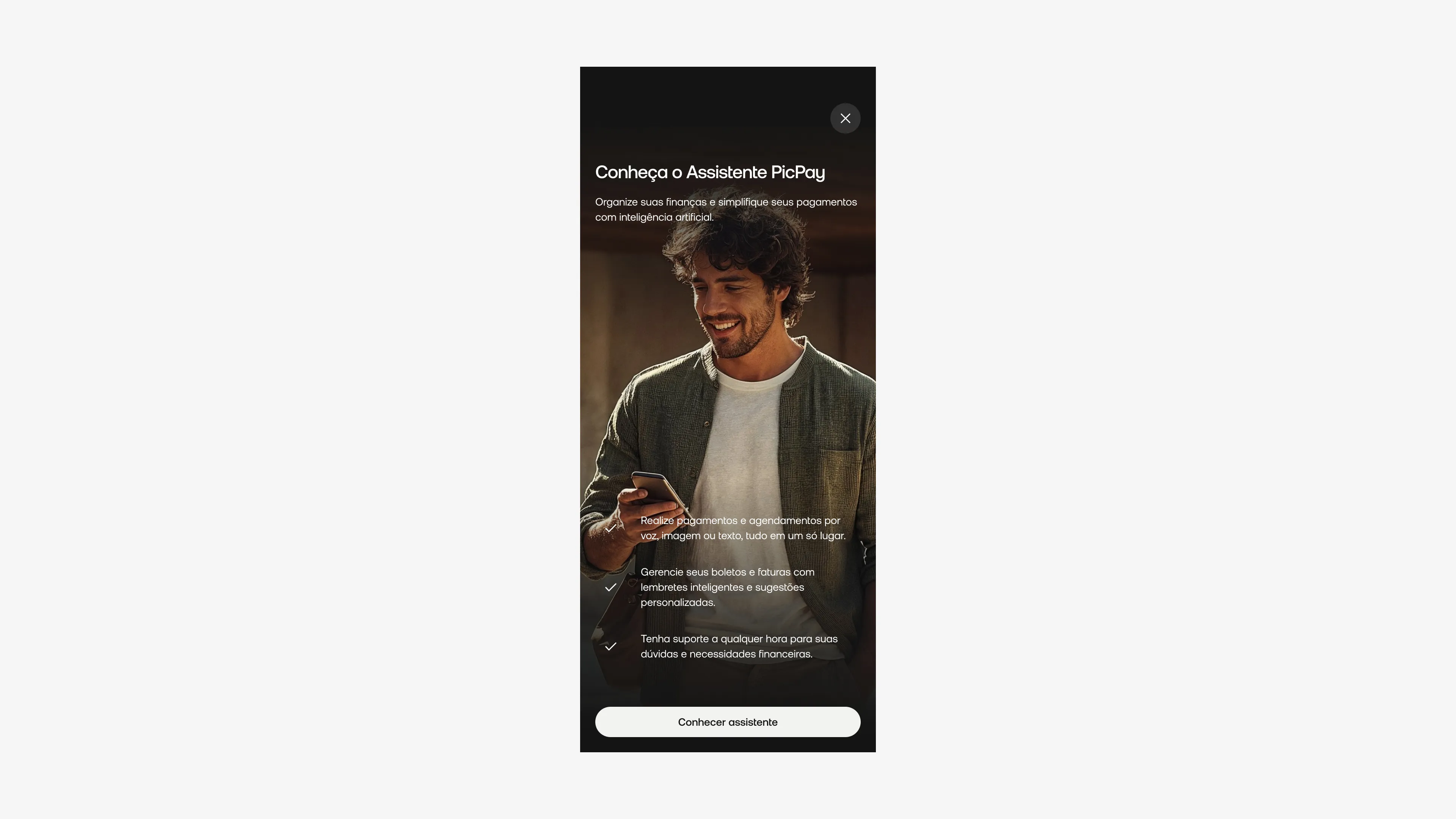 O Assistente PicPay surge como uma camada de inteligência artificial que centraliza e simplifica a vida financeira. Ele antecipa necessidades através de insights proativos (como sugestões de rendimento e lembretes de gastos previstos) e permite a execução de comandos complexos por voz ou texto. A solução transforma o aplicativo em um hub intuitivo, onde a tecnologia trabalha para organizar faturas, sugerir economias e facilitar pagamentos em um só lugar.